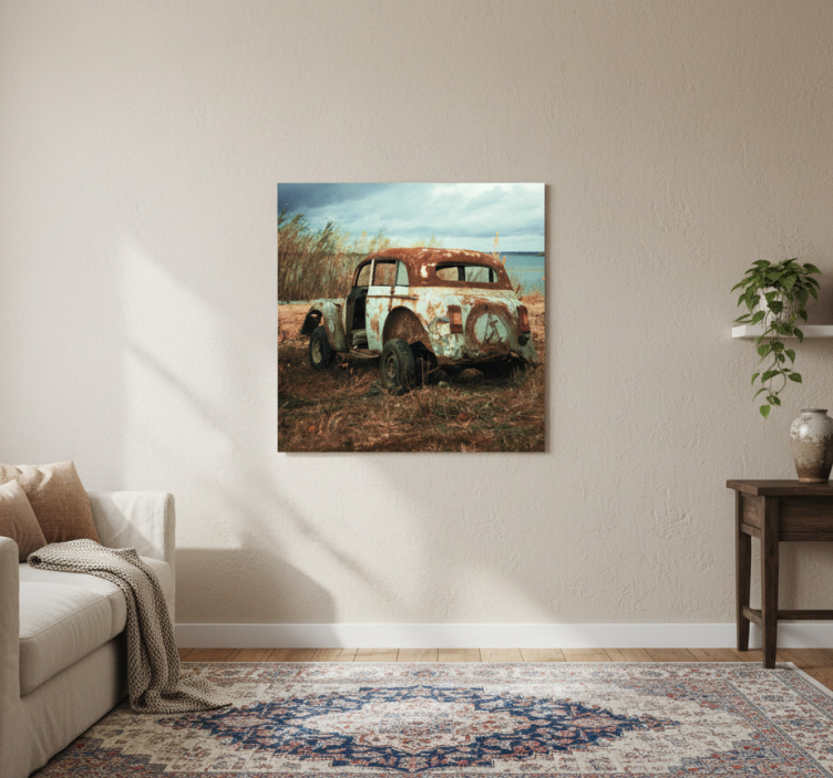 El Poster salón coche viejo y sucio en el campo es la elección ideal para aquellos que buscan una decoración auténtica y evocadora. Este diseño no solo embellece el ambiente, sino que también cuenta historias de tiempos pasados, creando un punto focal que invita a la conversación. ¡Deja que cada visitante se sumerja en la nostalgia y la belleza de lo olvidado!