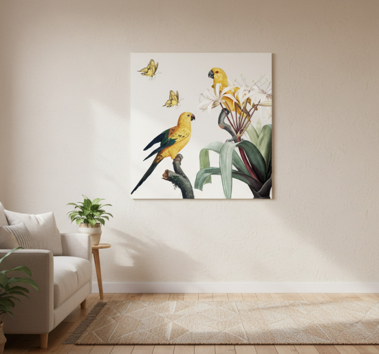 La elección de un poster salón loros con flores amarillas y mariposas es ideal para quienes buscan añadir un toque de frescura y alegría a su decoración. Este poster no solo embellece el ambiente, sino que también inspira felicidad y armonía, convirtiéndose en un elemento que atrae la mirada y despierta sonrisas. Cada vez que entres en la habitación, sentirás cómo la energía positiva fluye gracias a su diseño vibrante y cautivador.