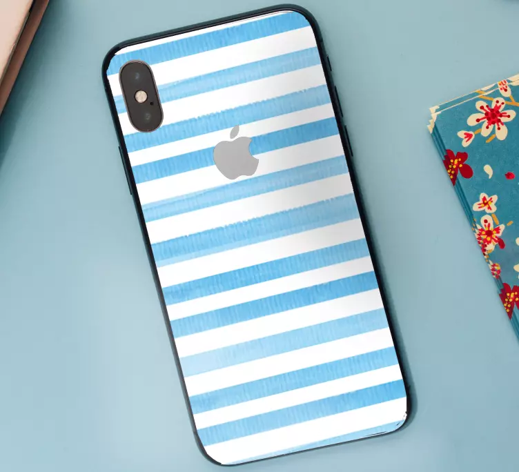Aplicar la Calcomanía iPhone patrón de rayas azules es muy sencillo. Simplemente limpia la superficie de tu dispositivo, retira el adhesivo de la calcomanía y colócala cuidadosamente en la posición deseada. Alisa cualquier burbuja de aire con una tarjeta o tu dedo. ¡Así de fácil!