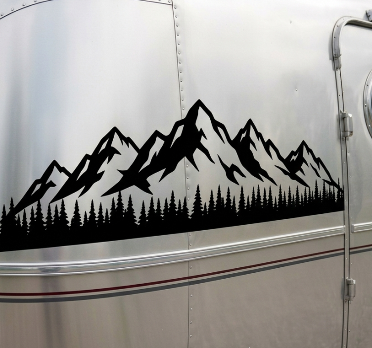 Referencia: A54710Un diseño llamativo presenta la silueta de majestuosas montañas con un denso bosque abajo, perfecto para realzar la estética de un vehículo recreativo. Las líneas intrincadas capturan la grandeza de la naturaleza, evocando un sentido de aventura y el aire libre.