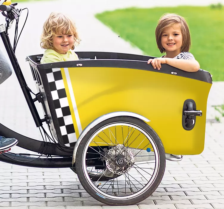 ¡Dale un toque único a tu bicicleta con nuestra Calcomanía para bicicleta diseño taxi amarillo! Este divertido diseño gráfico captura la esencia de un taxi juguetón, ideal para los más pequeños. Con su vibrante color amarillo y su temática de transporte, esta calcomanía es perfecta para decorar una bicicleta bakfiet, especialmente para quienes aman la repostería y los momentos divertidos. ¡Transforma tu bicicleta en un atractivo medio de transporte que hará sonreír a todos!
