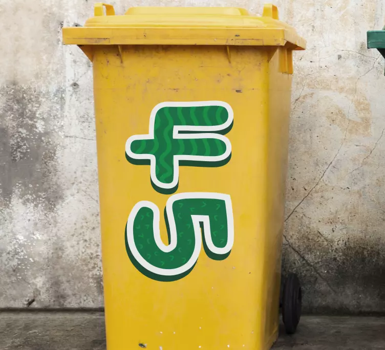 Descubre nuestra Pegatina container letras verdes personalizadas, una opción vibrante y única para dar vida a cualquier espacio. Con un diseño que combina números y letras en un atractivo tono verde, esta pegatina es totalmente personalizable, lo que te permite crear un envase que refleje tu estilo. ¡Transforma tu entorno con esta hermosa decoración que se adapta a tus necesidades!