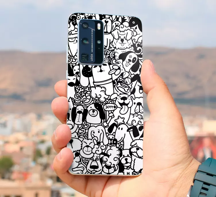 Descubre la Pegatina Huawei motivos de perro juguetón, un diseño encantador que presenta adorables perros y cachorros en un patrón gracioso. Este estampado en blanco y negro está pensado para darle un toque único y divertido a tu teléfono móvil. Es una forma perfecta de personalizar tu dispositivo y mostrar tu amor por los animales de una manera divertida y creativa.