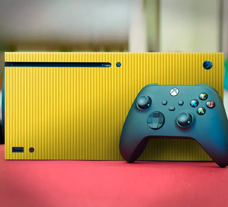 Descubre nuestra Pegatina xbox funda de juego vibrante, un adhesivo que transformará la apariencia de tu consola Xbox. Con un diseño gráfico que incluye videojuegos, rayas amarillas y un estilo dinámico, esta pegatina es perfecta para los amantes de los videojuegos que desean personalizar su consola y controlador. ¡Dale un toque único y vibrante a tu experiencia de juego!