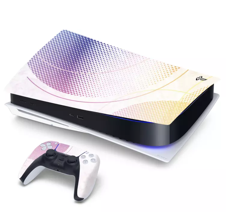 Descubre nuestra Skin PS5, un adhesivo único que transforma tu consola de juego con un diseño gráfico atractivo que combina topos, formas abstractas y geométricas. Este vinilo no solo decora tu PlayStation 5, sino que también se adapta perfectamente a su estructura, gracias a sus colores vibrantes que realzan la estética del controlador y la consola.