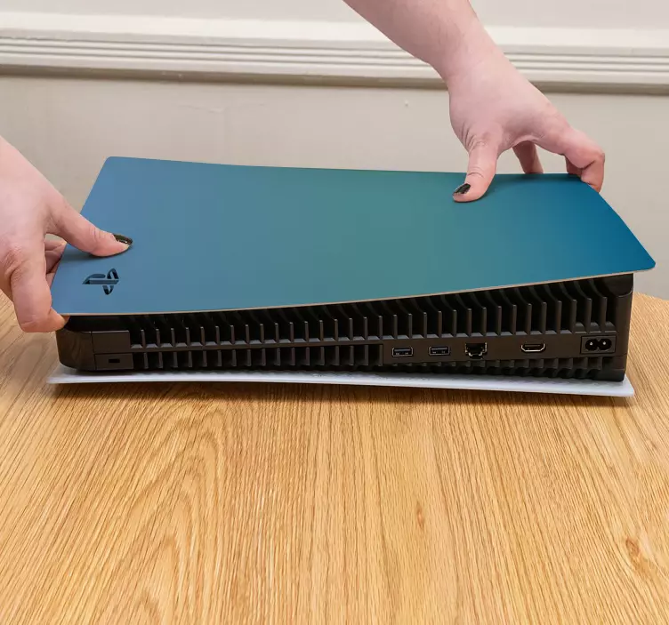 Transforma tu consola con nuestro Skin PS5 protector de consola de juegos y dale un toque único a tu experiencia de juego. Este adhesivo presenta un diseño gráfico cautivador en tonos azul y verde azulado, creando un hermoso degradado que hará que tu PlayStation 5 destaque en cualquier habitación. Además, su acabado satinado evita reflejos, permitiendo que disfrutes de los colores intensos sin deslumbramientos.