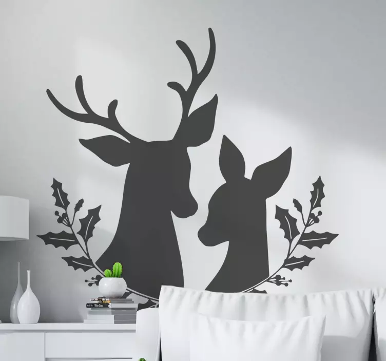 Descubre el encantador Vinilo animal de granja figuras de ciervo estilizadas, un diseño que captura la esencia de la naturaleza con su elegante silueta de ciervo, rodeada de hojas y una delicada corona de laurel. Este vinilo refleja la armonía de los animales y el acebo, creando una atmósfera acogedora y serena en cualquier espacio.