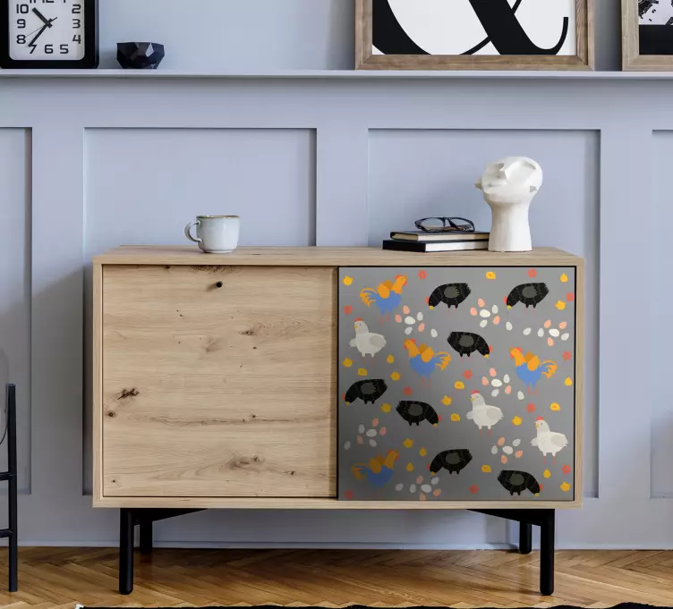 Descubre el encantador Vinilo animal de granja patrón de animales de granja, un diseño que destaca por su mueble juguetón y vistoso, lleno de animales como pollos, que aportará un toque fresco y alegre a cualquier espacio. Este estampado es perfecto para aquellos que desean dar vida a sus muebles con un estilo divertido y único.