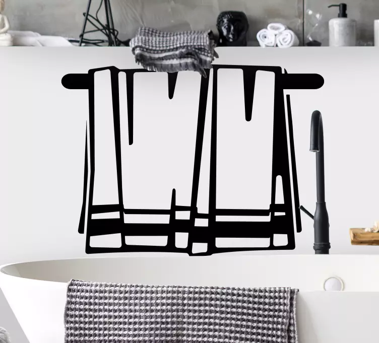 Descubre el encantador vinilo arte de perchero para toallas, un diseño que combina modernidad y minimalismo. Este hermoso arte presenta la silueta de toallas en un estilo limpio y contemporáneo, ideal para realzar la estética de tu baño. Al elegir este vinilo, estás integrando un elemento visual que no solo es funcional, sino también una obra de arte en sí misma.