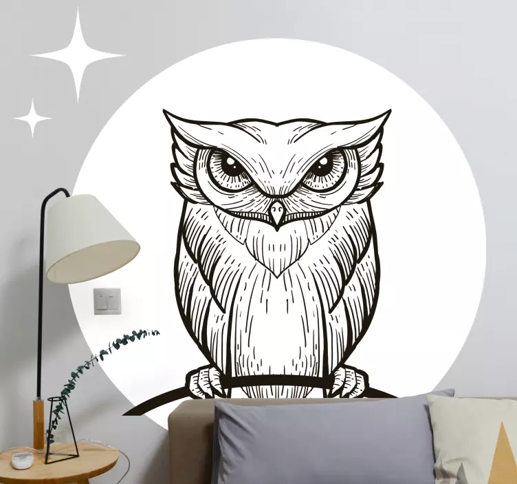 Descubre el Vinilo cabecero búho sabio intrincado, una espectacular ilustración circular que captura la esencia de la naturaleza con un búho rodeado de estrellas. Este diseño detallado en blanco y negro es perfecto para aquellos que buscan un toque especial y artístico en su decoración. Cada trazo y elemento está cuidadosamente elaborado para aportar un aire de sabiduría y serenidad a cualquier espacio.