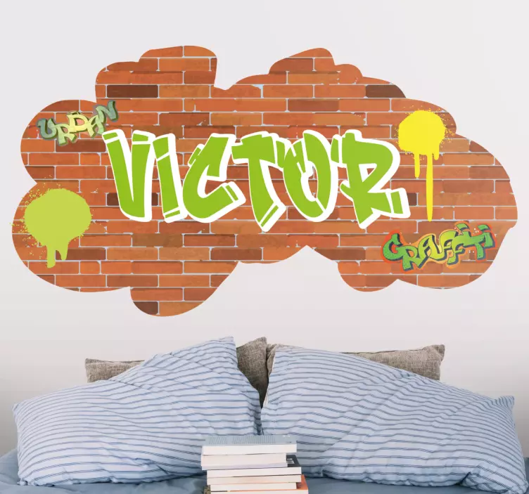Descubre el Vinilo cabecero nombre personalizado urbano, una pieza única que transforma cualquier espacio con su diseño lleno de vida. Este vinilo presenta un estilo pintada que evoca el arte del graffiti y el grafiti, ofreciendo una representación vibrante del arte urbano. Con detalles que simulan una pared de ladrillo y una textura nube que atrapa la mirada, este producto personalizable es perfecto para añadir ese toque vistoso y auténtico a tus paredes. ¡Haz que cada rincón de tu hogar cuente una historia!