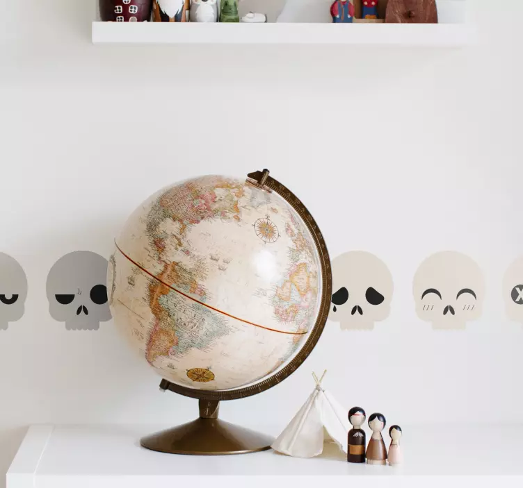 Descubre la magia del Vinilo caras de calaveras juguetonas, un diseño que combina la esencia de los piratas y la alegría de las calaveras en una cenefa decorativa y juguetona. Con caracteres expresivos y un toque decorativo, este vinilo transforma cualquier espacio en un lugar lleno de diversión y personalidad. ¡Ideal para quienes buscan darle un giro original a su decoración!