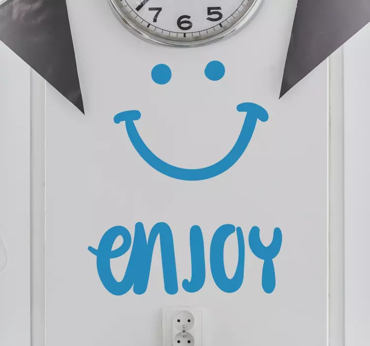 Referencia: A9271Vinilos autoadhesivos de fácil instalación, con el pedido se incluye una detallada hoja de instrucciones. Adhesivo en el que se representa un "smiley" o cara sonriente y un texto caligráfico tipo lettering en la parte inferior con la palabra "enjoy".