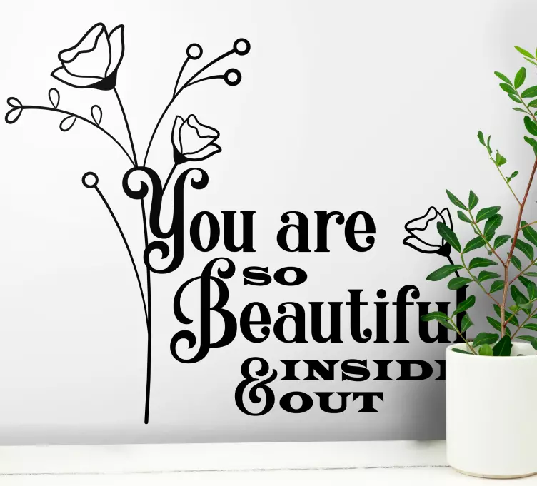Descubre el encanto de nuestro vinilo frase célebre eres tan hermosa por dentro, un diseño que fusiona la belleza de flores delicadas con un mensaje positivo e inspirador. Este vinilo no solo decora, sino que también transforma tu espacio, aportando una energía renovada y vibrante. La cita que presenta, llena de inspiración, recuerda la hermosura que reside en cada uno de nosotros, convirtiendo cualquier pared en un recordatorio visual de la belleza interior.