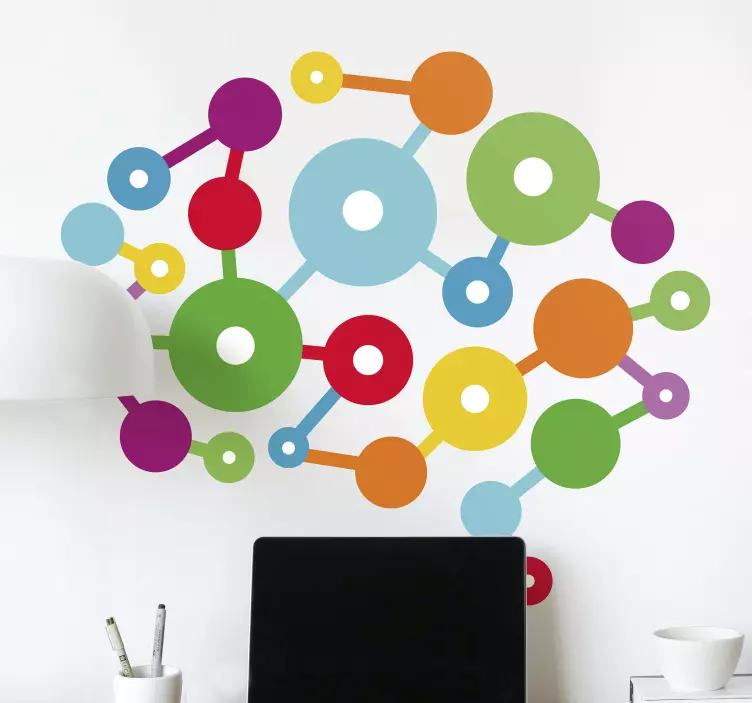 Descubre el asombroso vinilo geométrico enlaces circulares coloridos, una obra de arte que transforma tus espacios con su diseño abstracto y geométrico. Con patrones creativos que evocan la complejidad del cerebro y las neuronas, este vinilo vistoso y moderno es ideal para quienes buscan darle un toque único y contemporáneo a su decoración. ¡Deja que tu imaginación vuele y llena tus paredes de color y vida!