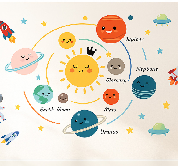 El Vinilo infantil vinilo infantil mural planetario para niños es la opción perfecta para estimular la creatividad y el aprendizaje en los más pequeños. Al decorar sus espacios con este mural, no solo embelleces la habitación, sino que también introduces a tus hijos en el fascinante mundo del cosmos. Este diseño colorido y alegre inspira aventuras imaginativas y curiosidad, haciendo que cada día sea una nueva oportunidad para explorar las maravillas del universo.