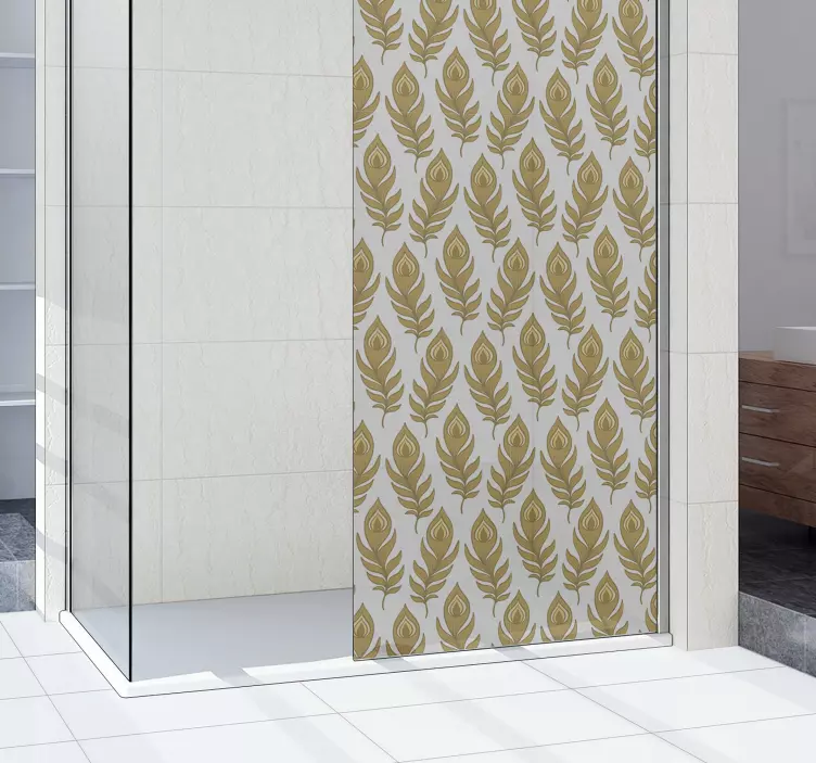 Transforma tu baño en un oasis de elegancia con el Vinilo mampara baño elemento hoja elegante, que presenta un diseño gráfico cautivador. Este vinilo para mampara de ducha cuenta con un intrincado patrón floral que combina flores y plumas, evocando la belleza de la naturaleza. Con un acabado en dorado que aporta un toque de finura, cada hoja y detalle se entrelazan para crear un estampado verdaderamente decorativo que transformará tu espacio.