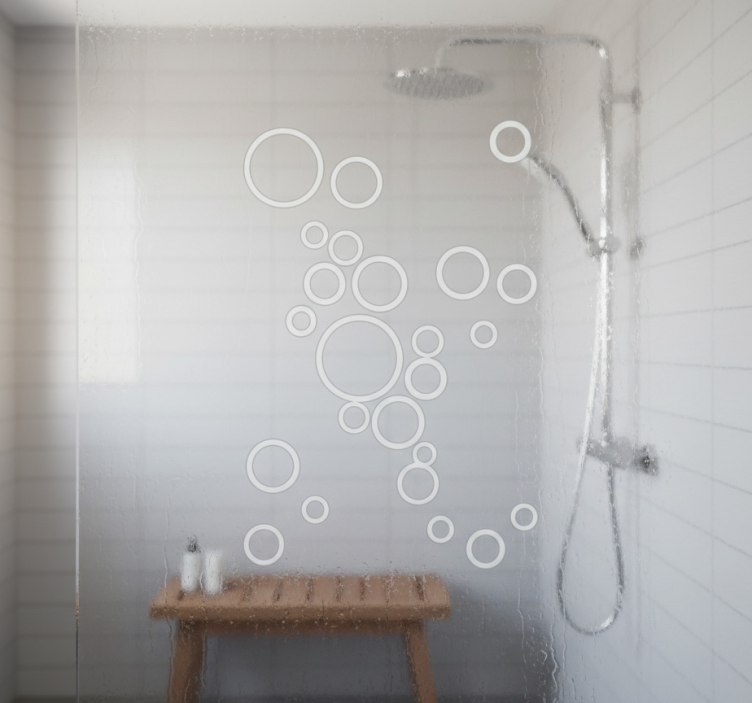 Vinilo mampara baño orbes flotantes abstractos