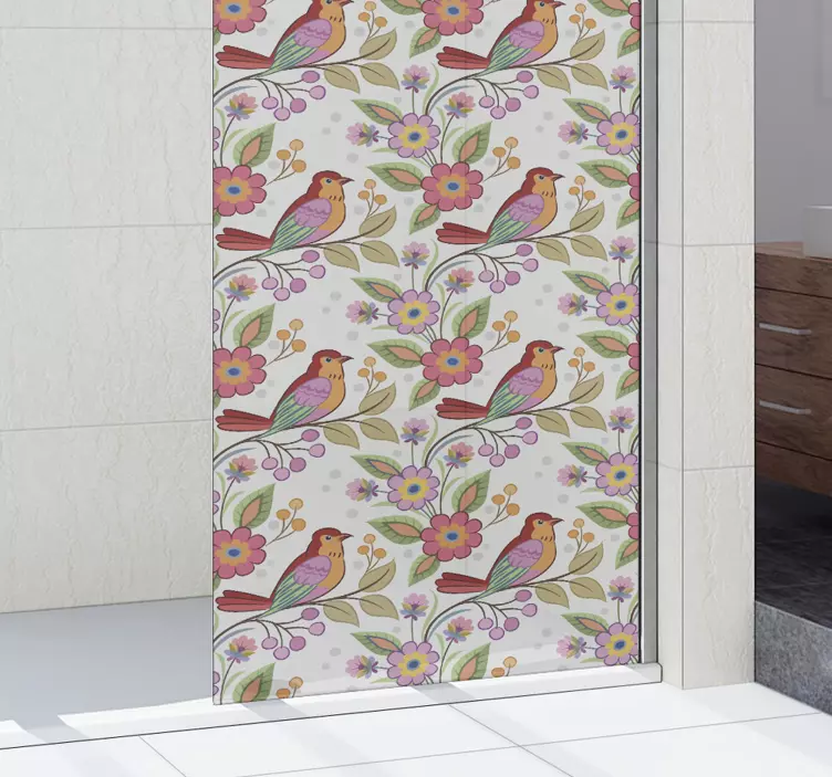 Vinilo mampara baño patrón de aves coloridas