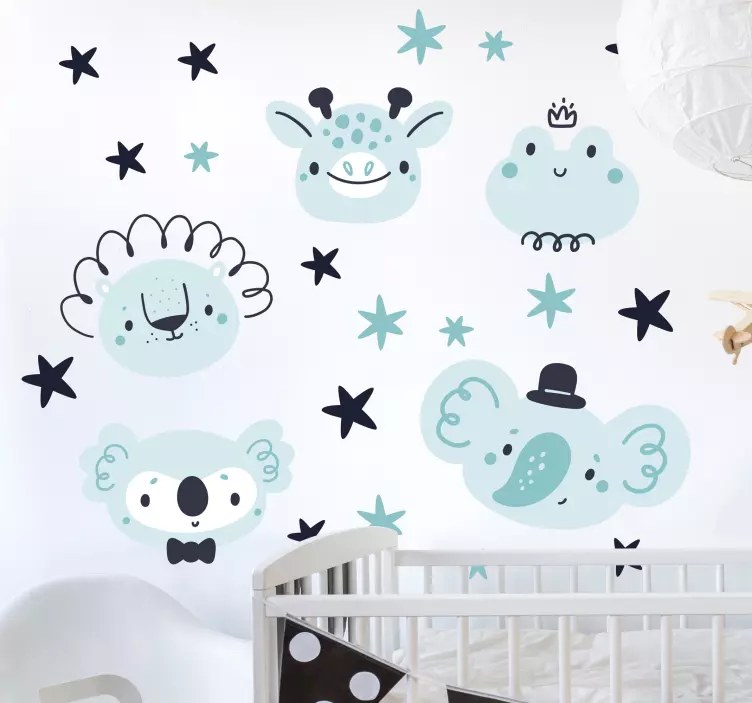 Descubre el encantador vinilo mascota caras de animales adorables, un diseño que combina la estética nórdica con la ternura de animales en un color azul vibrante. Este producto presenta dibujo animado de animales que son simplemente irresistibles, perfectos para dar un toque juguetón a cualquier habitación infantil. Con motivos de estrellas, este vinilo es ideal para crear un ambiente lleno de alegría y creatividad.