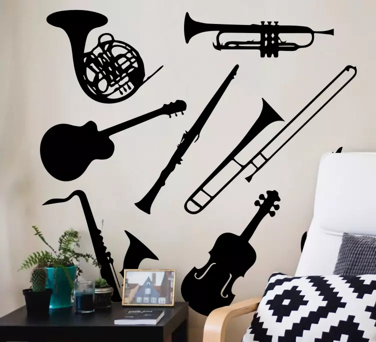 Descubre el encanto de nuestra colección de vinilo música colección de instrumentos musicales, donde cada diseño evoca la magia de una orquesta en pleno rendimiento. Este arte decorativo presenta siluetas de instrumentos musicales que aportan un toque vibrante y sofisticado a cualquier ambiente. Ideal para amantes de la música, este vinilo se convierte en una pieza central que transforma y alegra tu espacio.