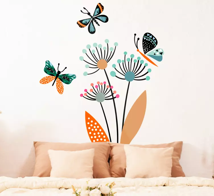 Vinilo naturaleza mariposas florales coloridas