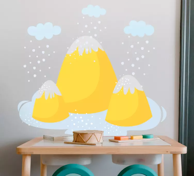 Descubre la belleza de la naturaleza con nuestro vinilo naturaleza picos amarillos de montaña. Este diseño caprichoso presenta montañas de un vibrante color amarillo, rodeadas de suaves nubes y un manto de s nieve, creando una ilustración que evoca tranquilidad y aventura. Perfecto para darle vida a cualquier espacio, este vinilo es una invitación a conectar con la naturaleza desde la comodidad de tu hogar.