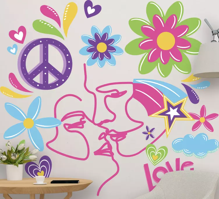 Referencia: A48089Una composición vibrante que presenta rostros entrelazados, flores coloridas y formas de corazón, simbolizando el amor y la paz. Este arreglo animado irradia un espíritu juguetón, convirtiéndolo en un encantador añadido a los espacios personales, promoviendo una atmósfera cálida y acogedora.