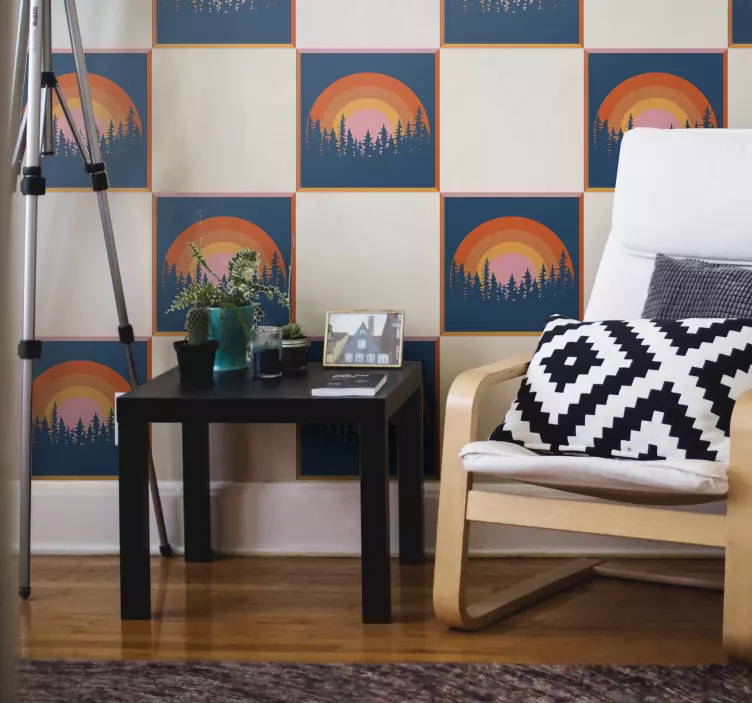Descubre la magia del vinilo paisaje de bosque al atardecer, donde un sol radiante se funde con un bosque exuberante, creando un paisaje natural lleno de colores vibrantes. Este diseño, que evoca la serenidad de un atardecer, es perfecto para transformar tus espacios en un refugio de paz y belleza. Los azulejos que componen este vinilo añaden un toque artístico que resalta la conexión con la naturaleza, haciendo que cada rincón de tu hogar se sienta acogedor y lleno de vida.