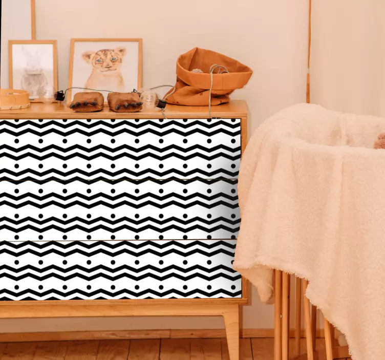 Referencia: A51668Un patrón elegante que presenta líneas en zigzag y puntos, ideal para realzar la estética de los muebles. Este diseño añade un toque contemporáneo con su esquema monocromático, lo que lo hace adecuado para diversos entornos interiores, al tiempo que crea interés visual y una declaración audaz.