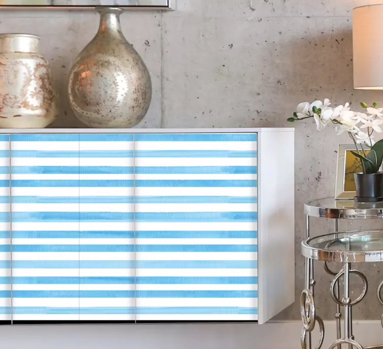 Transforma tu espacio con nuestro vinilo para mueble motivo a rayas azules, un diseño que destaca por sus elegantes rayas en tonos azules que evocan un estilo moderno y vibrante. Este hermoso patrón de pinceladas texturizadas aporta un aire fresco y contemporáneo a cualquier mueble, ideal para aquellos que buscan darle un toque único a su interior.