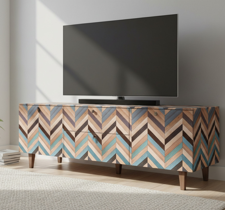 Vinilo para mueble patrón espiga madera multicolor