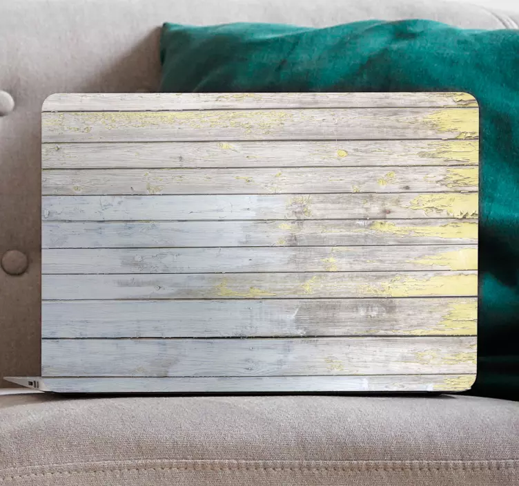 Descubre la elegancia de nuestro Vinilo para portátil acabado de madera rústica, diseñado para transformar tu ordenador portátil en una obra de arte. Este vinilo presenta un hermoso acabado que simula tablones de madera, con una textura que evoca la calidez y rusticidad del estilo campestre. Los tonos amarillos y blancos aportan un aire fresco y acogedor, perfecto para aquellos que buscan un toque único y personalizado en su dispositivo.