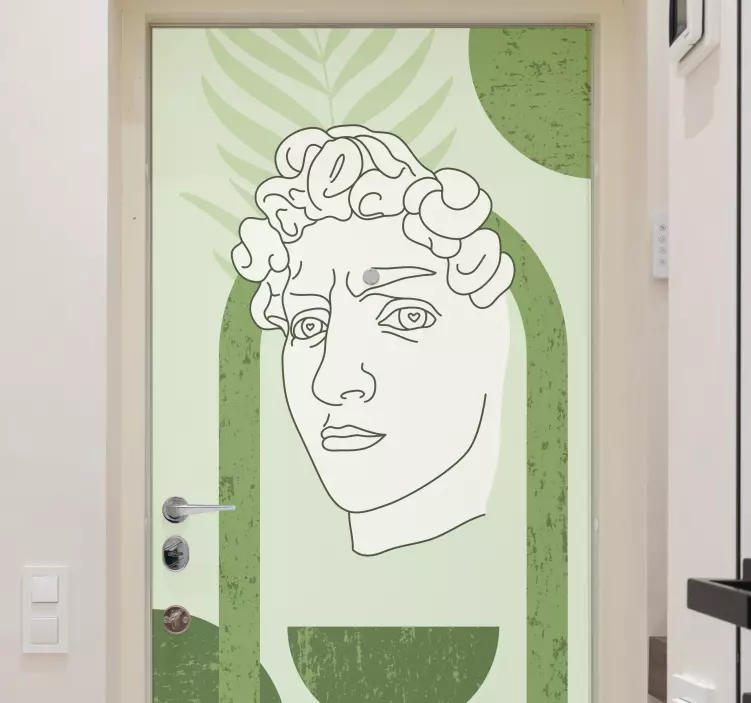 Descubre un mundo de elegancia y modernidad con nuestro vinilo para puerta arte de cara contemporáneo. Este adhesivo destaca por su diseño gráfico único que presenta la icónica estatua de David en un estilo minimalista. Con un arte lineal que juega con formas abstractas y tonos verdes, transforma cualquier puerta en una obra de arte contemporáneo que atraerá todas las miradas.