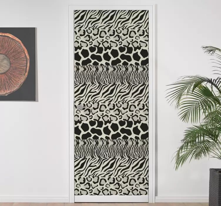 Descubre el fascinante vinilo para puerta estampado de piel de animal, que transforma cualquier puerta en una obra de arte moderna. Con un diseño gráfico en blanco y negro que presenta una huella animal inspirada en el leopardo y un patrón que recuerda a la cebra, este adhesivo es perfecto para quienes buscan un toque salvaje y elegante. Su impresión de alta calidad garantiza que el estampado se mantenga vibrante y atractivo en cualquier ambiente.