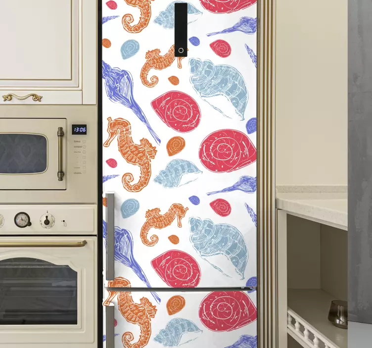 Descubre un mundo de diversión y frescura con nuestro Vinilo para refrigerador caballitos de mar y conchas. Este diseño vibrante y juguetón evoca la belleza del mar y la vida marina, con encantadores caballitos de mar y conchas marinas que transformarán tu refrigerador en un auténtico paraíso marítimo. Con un patrón vistoso y alegre, este estampado acuático es perfecto para dar un toque marinero a tu cocina y hacerla más acogedora.