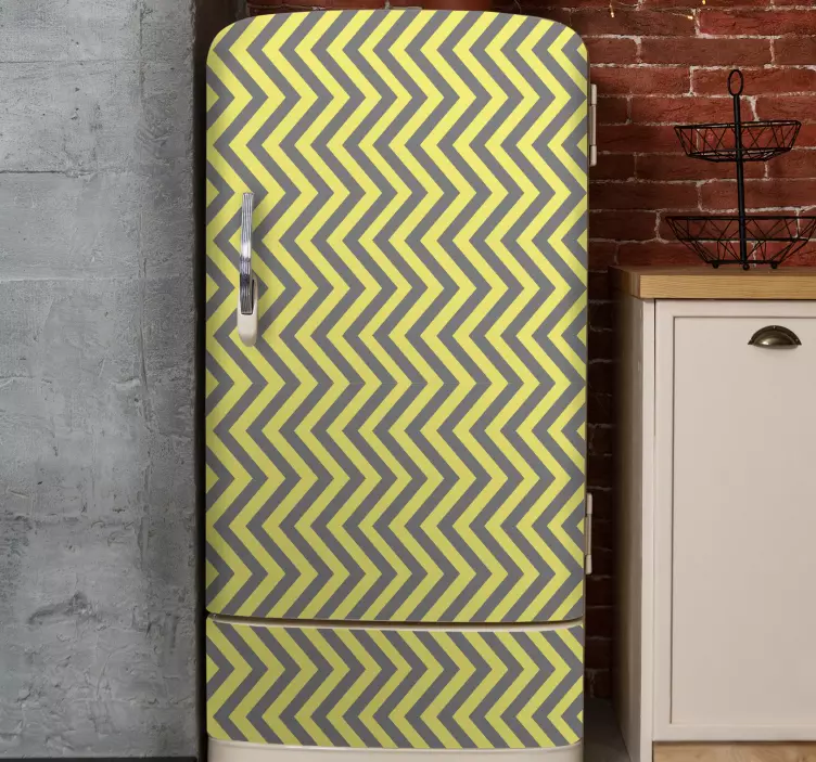 ¡Dale un nuevo aire a tu refrigerador con nuestro Vinilo para refrigerador diseño chevron! Este espectacular diseño presenta un patrón de rayas en zig-zag que seguramente captará la atención de todos. Con su estilo moderno y vistoso, es la opción perfecta para la decoración del hogar. Transforma tu nevera, frigorífico o heladera en un elemento decorativo que refleje tu personalidad y estilo.