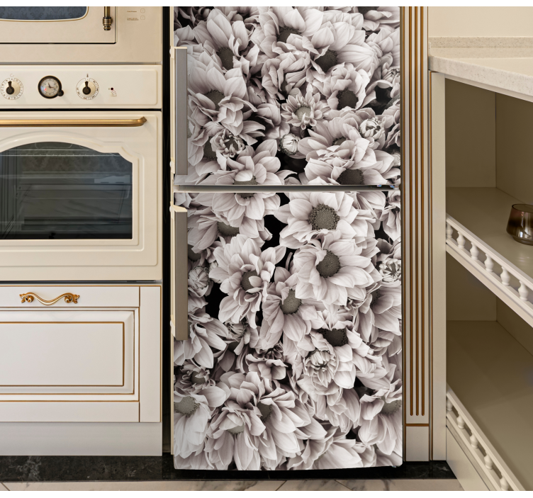 Descubre la belleza del vinilo para refrigerador estampado floral elegante, un diseño que transforma tu refrigerador en una obra de arte. Con un toque de peonía y flores en un estilo realista, este vinilo en tonos blanco y negro añade un aire de sofisticación a tu cocina. La naturaleza se hace presente, dando vida a tu nevera y creando un ambiente acogedor y elegante que seguramente encantará a todos.