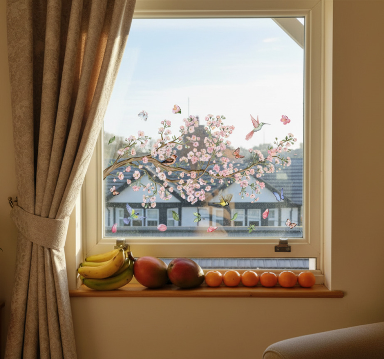Comprar el vinilo para ventana flores de cerezo con pájaros en nuestra tienda en línea te garantiza calidad y exclusividad. Diseñado para aplicarse en ventanas, su versatilidad también permite usarlo en cualquier superficie plana. Además, producimos este vinilo bajo pedido, lo que te brinda la opción de personalizarlo a tu gusto. ¡Haz de tu hogar un lugar único y especial con nuestro vinilo!