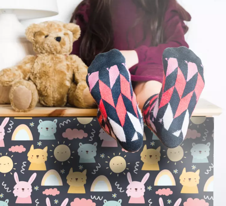 Transforma la habitación de tus pequeños con nuestro Vinilo pared infantil estilos de criaturas adorables, un diseño que cautiva a través de su colorido y divertido patrón. Con encantadores animales, arcoiris y dibujos animados, este estampado caprichoso es perfecto para dar vida a cualquier mueble y hacer que el espacio sea más vistoso y juguetón. Cada detalle está pensado para estimular la imaginación de los niños y llenar su mundo de alegría!
