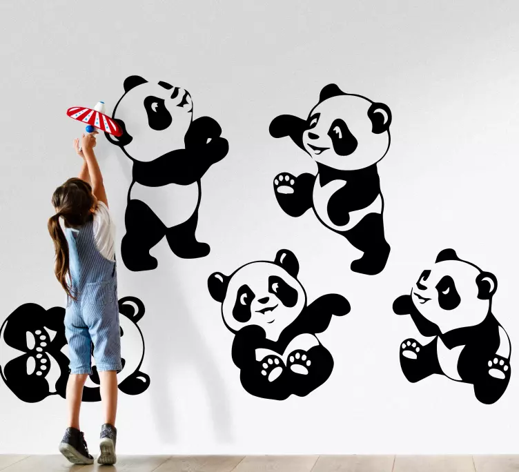 Vinilo pared infantil figuras de panda caprichosas