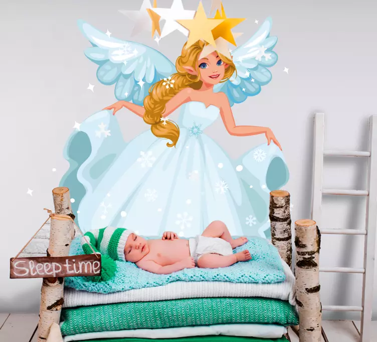 Descubre la magia del vinilo pared infantil hada con alas, una encantadora lámina que transforma cualquier habitación en un universo de fantasía. Con un diseño caprichoso que presenta un hada juguetona, alas que parecen flotar y copos de nieve brillantes, esta decoración es perfecta para inspirar la imaginación de los niños. ¡Déjalos volar en un mundo lleno de magia y sueños!
