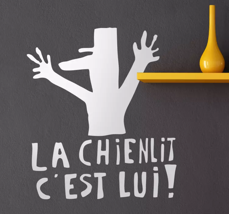 Referencia: A51776Un diseño caprichoso con un personaje humorístico con las manos levantadas, acompañado del texto 'La chienlit c'est lui!'. El estilo monocromático permite elegir colores versátiles, añadiendo un elemento divertido a los espacios infantiles.