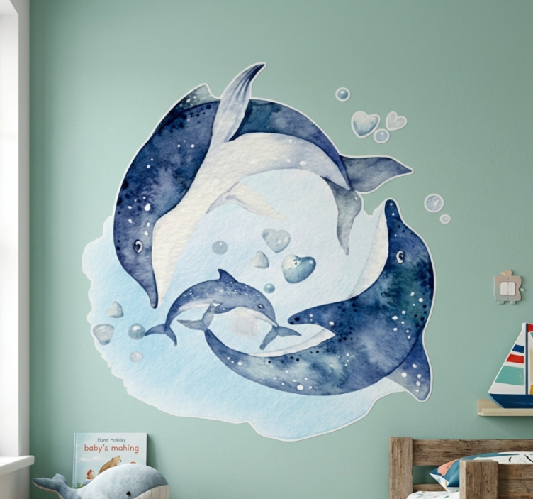 El vinilo pared mural de delfines acuarelados es la opción ideal para quienes buscan dar un toque único y divertido a sus espacios. Imagina entrar a una habitación y sentirte como si estuvieras en el fondo del océano, rodeado de estas majestuosas criaturas. Este mural no solo decora, sino que transforma cualquier ambiente en un lugar inspirador y lleno de vida, perfecto para habitaciones infantiles, salas de juegos o cualquier rincón donde desees añadir un poco de alegría.