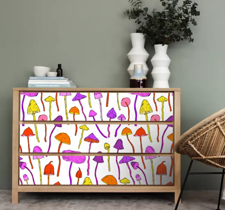 Descubre la belleza única de nuestro vinilo patrones de hongos coloridos, una ilustración vibrante que celebra la flora y la naturaleza. Este diseño psicodélico, lleno de setas y patrones vistosos, transformará cualquier mueble en una obra de arte, aportando un toque fresco y alegre a tu espacio. ¡Déjate llevar por la magia de las setas y dale vida a tus ambientes!