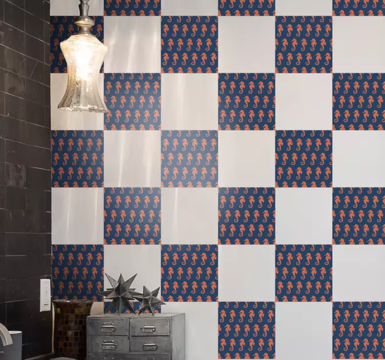 Descubre un mundo de vida marina con nuestro vinilo pez diseño de caballitos de mar. Este hermoso diseño presenta caballitos de mar rodeados de vibrantes patrones que evocan la esencia del océano. Con un estilo vistoso y atractivo, este azulejo decorativo es perfecto para quienes quieren llevar un toque submarino a sus espacios. ¡Transforma tu hogar en un auténtico paraíso marino!