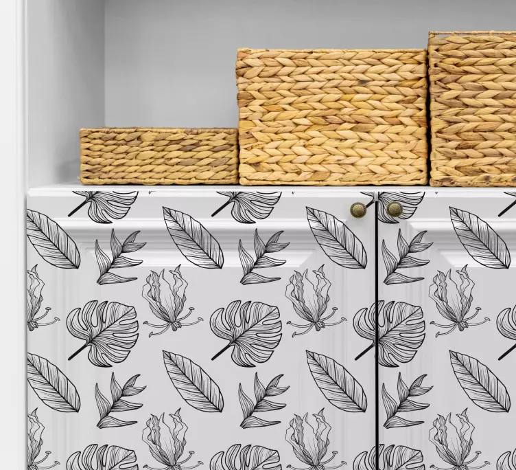 El vinilo planta con patrones de hojas es una maravillosa representación gráfica de la naturaleza. Su diseño en blanco y negro captura la esencia de las plantas tropicales, creando un patrón estampado que aporta un aire fresco y vibrante a cualquier espacio. Ideal para decorar muebles o simplemente para dar vida a las paredes, este vinilo es una celebración del mundo floral y natural que transformará tu hogar en un oasis de estilo.