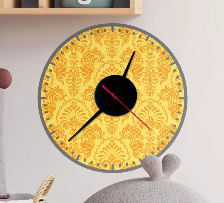 Descubre nuestro vinilo reloj reloj floral elegante, un adhesivo que transforma cualquier pared en una obra de arte. Con un hermoso diseño de damasco y un patrón floral en tonos amarillos, este estampado redondo no solo es visualmente atractivo, sino que también aporta un toque de elegancia a tu decoración. Perfecto para quienes buscan un estilo único y sofisticado.